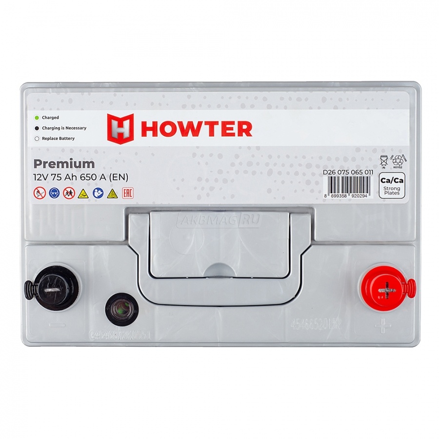 HOWTER Premium ASIA 75R 650A 264x175x220 463201 - Ростов-на-Дону HOWTER Premium ASIA 75R 650A 264x175x220 9500 In stock HOWTER 175 264 220 Аккумулятор HOWTER Premium ASIA 75R. Ёмкость: 75 Ач. Полярность: обратная
